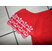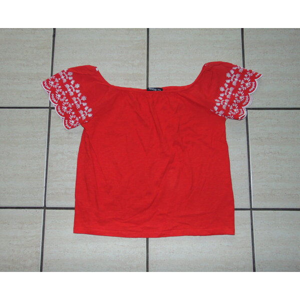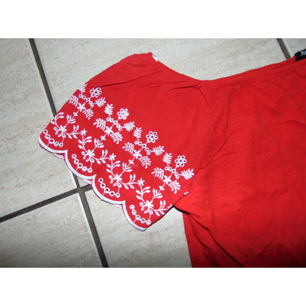 rotes Carmenshirt mit Gummibund am Ausschnitt
