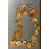 Perlmuttscheiben anscheinend mit orangefarbener Farbe bemalt.