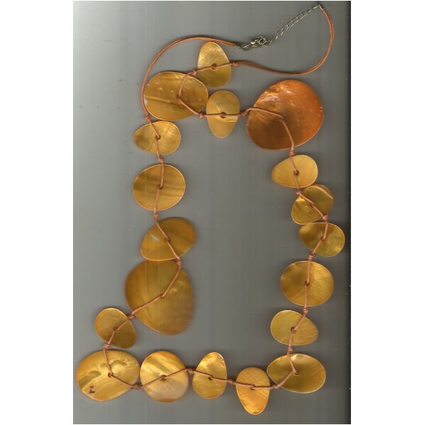 ca. 65 cm Teil mit den Perlmuttteilen, Schnur, Schloß + Kette: 28 cm
