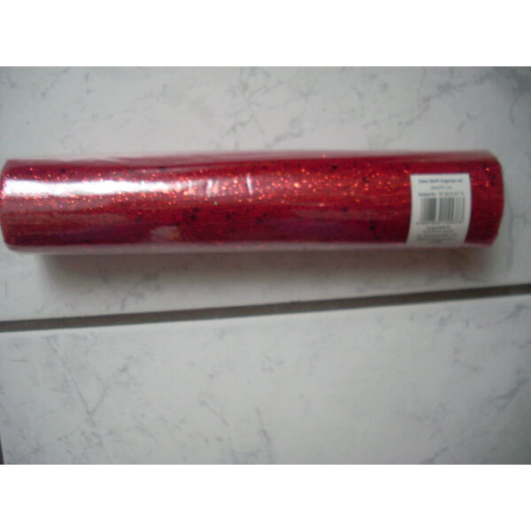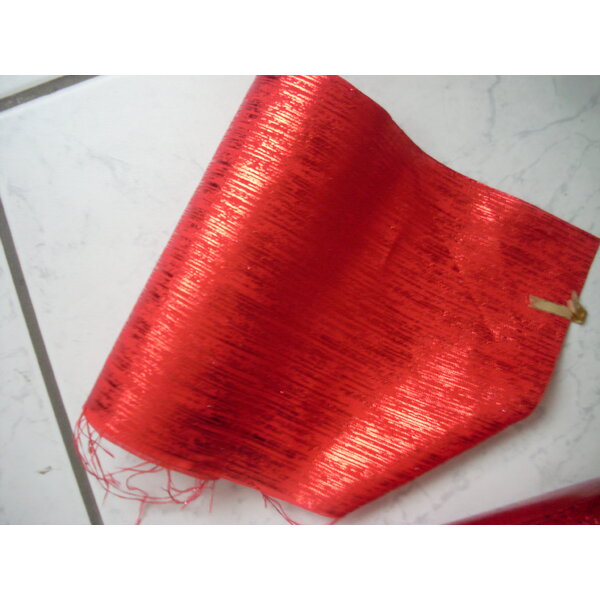 Eine Rolle verpackt mit rotem Organzastoff (24x270cm) und eine Zugabe mit rotem Stoff.