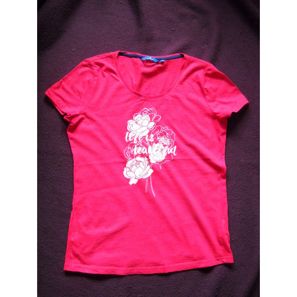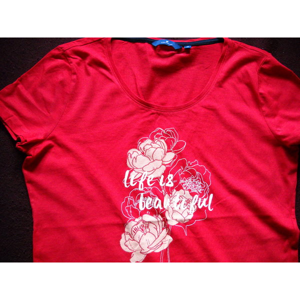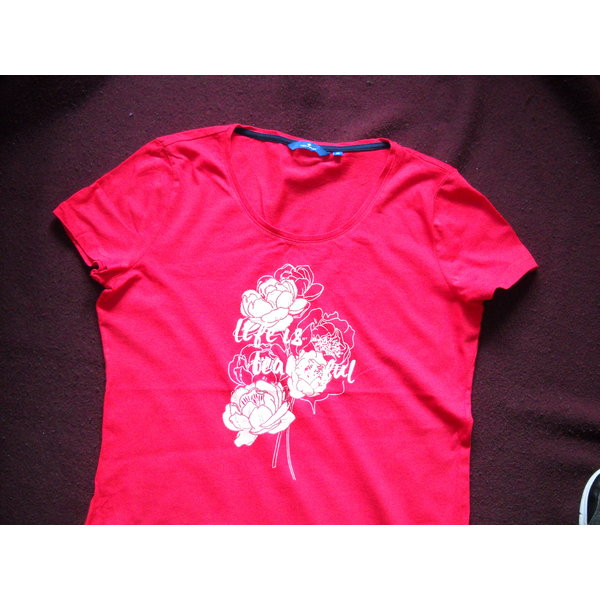 leichtes rotes Shirt als Gr M ausgelabelt; fällt jedoch aus wie S