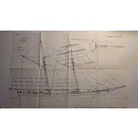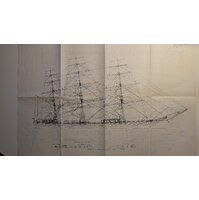 Plan eines Klipperschiffes M 1:200 mit Anschichten, Schnitten und Grundriss. ... mehr