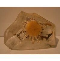 Silberdistel in Gießharz, in unregelmäßiger Form, etwa 13 x 9 cm. Stammt nach Werkstoff und Design aus Ende 50er/Anfang 60er ... mehr