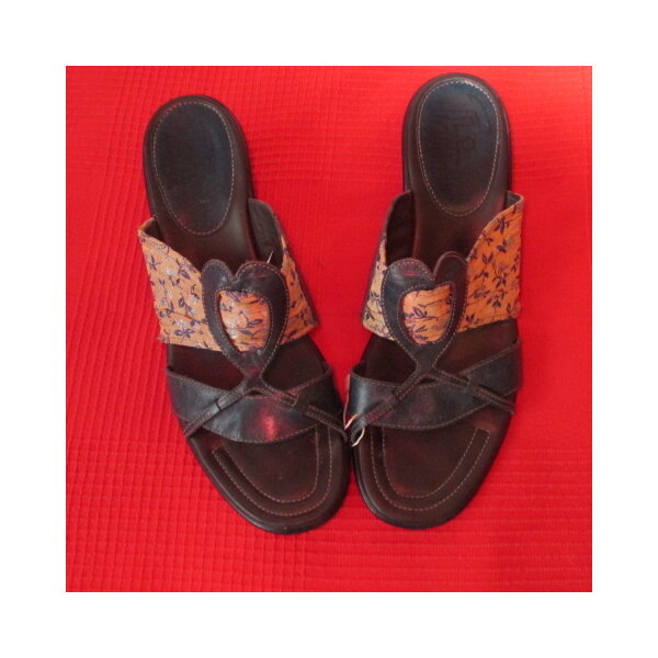 Obermaterial Leder, im geblümten Bereich Seide, kpl. mit Leder gefüttert - Absatzhöhe 55mm - es steht Gr. 40 drin, aber mir passten sie auch noch bei 41 (Innensohlen-Länge 27,5 cm)