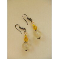 Schöner Modeschmuck mit verschiedenen gelben Perlen. Länge des Anhängers (ohne Haken) ca. 4 cm. Die Ohrringe wurden von einer TP selbst gemacht und ... mehr