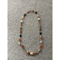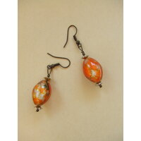 Modeschmuck mit schön gemusterten orangefarbenen Perlen. Länge des Anhängers (ohne Haken) ca. 3,5 cm. Die Ohrringe wurden von einer TP selbst ... mehr