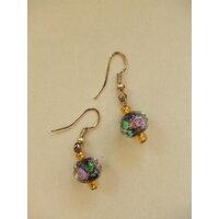 Modeschmuck mit schön gemusterten schwarz-bunten, leicht glitzernden Perlen. Länge des Anhängers (ohne Haken) ca. 2 cm. Die Ohrringe wurden von ... mehr