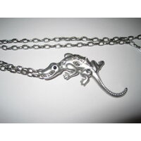 Hier gebe ich diesen tolle Halskette ab. Es ist eine Echse mit weißen Schmucksteinen drauf. ... mehr