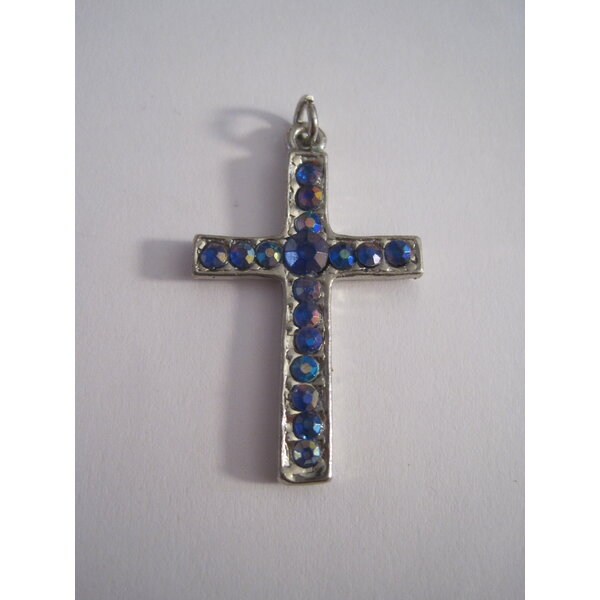 Hier gebe ich diesen schönen silbernen Anhänger weg. Ein Kreuz mit blauen Schmucksteinen.