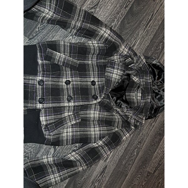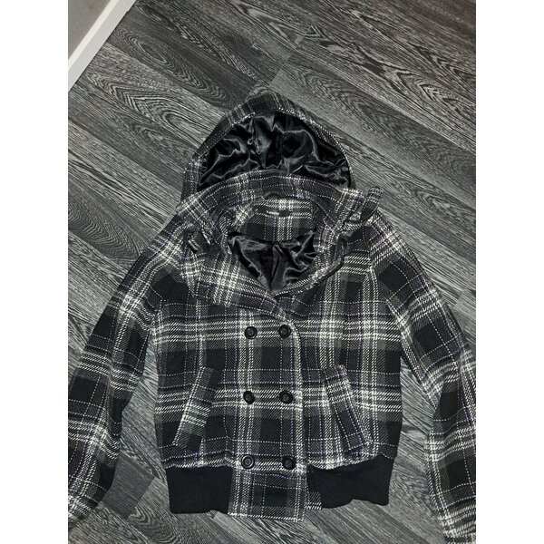 Biete hier eine schöne schwarz-weiß karierte Jacke von Blend. Sie hat einen hohen Wollanteil und trägt sich sehr gut. Sie ist für den Übergang geeignet.