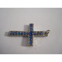 Hier gebe ich diesen schönen silbernen Anhänger weg. Ein Kreuz mit blauen Schmucksteinen.