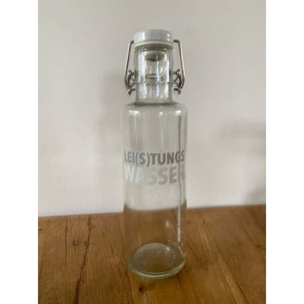 SOULBOTTLE – 0.6L – Trinkflasche aus Glas mit Gravur „lei(s)tungswasser" und Füllstandsanzeige in %