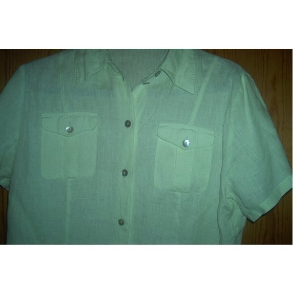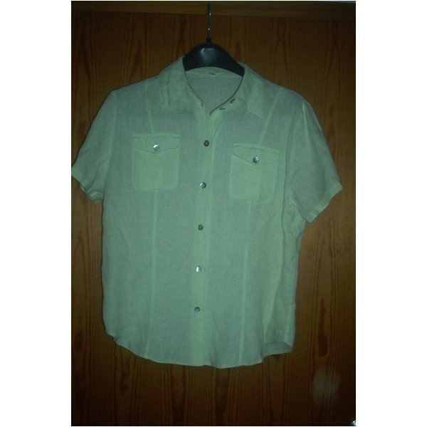 sehr gut erhaltene Leinenbluse in Gr. 40 - sehr zartes hellgrün - 2 Brusttaschen vorn, durchgeknöpft, Perlmuttknöpfe