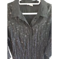 Wunderschöne Canda Bluse mit Silber-glitzerndem floralem Print, Knitteroptik, 3/4 Ärmel, ganz leichtes Material, etwas transparent