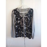 Wunderschöne Strickjacke aus 90% Baumwolle mit floralem Muster, hinten mit Falte, Gummi an Armbündchen, mit Reißverschluss