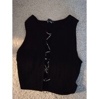 schwarzes Crop-Top mit einem mit Strasssteinchen besetzten Band, das man zum Schließen durchfädeln kann ... mehr