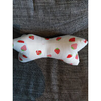 Leseknochen mit Erdbeer Motiven. Er wurde mit BW Stoff genäht und mit Watte ausgestopft ... mehr