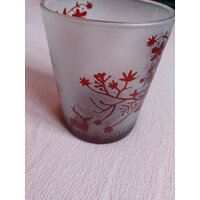 31 cm hohes Glas, 10 Durchmesser, mit dunkelroten Bäumen und Hirschen als Dekor auf dem mattgrauen Glas ... mehr