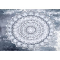 Segeltuch mit Mandala Motiv und Ösen zum Aufhängen, auch als Sichtschutz geeignet, grau blauer weiß, Polyester, leichter ... mehr