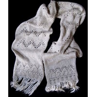 BONITA Strickschal, cremefarben, mit Lochmuster, Silberlurex und Fransen.
