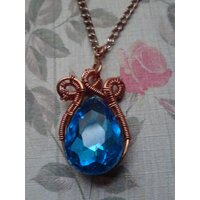 Handgefertigter Anhänger mit blauem, schön facettierten Glasstein. Die Kette gibt es mit dazu.