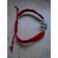 Handgefertigtes Makramee-Armband in der Farbe rot, die in China als Glückfarbe gilt. In der Mitte befindet sich ein verschlungener Knoten. Die Länge ... mehr