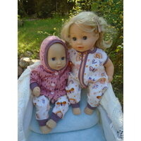 Strampelhose für Babypuppen zwischen 34- 38 cm Größe mit Regenbogen, Schmetterlingen und Blümchen bedruckt. Dazu eine Jacke. ... mehr