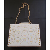 Clutch, Abendtasche, beige mit goldfarbenen Steinchen.