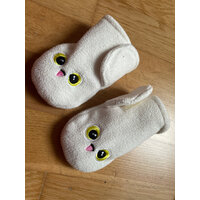 Super flauschige Fäustlinge von Topomini mit Gesicht auf der Oberseite. Mit Klettverschluss einstellbar.
