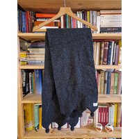 Sehr weicher Wollschal mit jeweils drei Bommeln an den Enden. Durch die Breite Form wärmt er schon, sobald er nur lose über den Schultern ... mehr