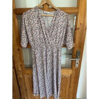 Leichtes Kleid mit hübschem Blümchen-Muster in fleider, pink, weiß und schwarz, mit angeschnittenen kurzen, weiten Ärmeln und gesmokter Taille. ... mehr