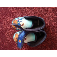 Handgestrickte Babysocken aus Sockenwolle von Woll Butt "Milos" in blau, braun und grau. Feines Bündchen am Beinabschluss