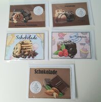 5 Grußkarten mit Schokoladenmotiv in 3D-Technik. Dazu gibt es passende Kuverts. Jede Karte ist in einem Folienbeutel verpackt. ... mehr