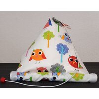 Lesekissen mit Lesezeichen und Tragegriff. Das Lesekissen kann je nach Buchstärke unten variabel aufgerollt werden.