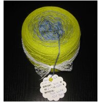 Ein handgefachter Bobbel mit Farbverlauf von Grün (Kiwi) zu Mittelblau: