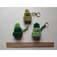 3 niedliche selbstgestrickte Mützchen mit Bommel und Schlüsselring, z.B. als Schlüssel- oder Geschenkanhänger verwendbar ... mehr