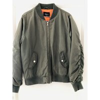 Leichte Jacke aus schimmerndem Material. Handytasche innen. Größenangabe ist schwer lesbar, bitte Maße beachten: Brustweite 69cm, Länge ... mehr