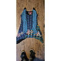 Mehrfarbig dunkelblau, rostfarbenes Muster (42/ L)