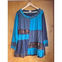 sehr weite, längere und luftigeTunika-Bluse oder kurzes Kleid mit tiefem V-Ausschnitt und Dreiviertel-Armlänge mit weiteren Armenden, Maße: Länge ... mehr