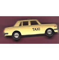 Taxi Modellauto von Fa.Grell aus Metall, mit Taxischild am Dach, seitlich steht TAXI drauf, Räder beweglich. Maßstab 1:60.