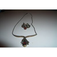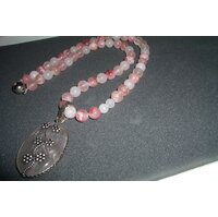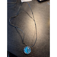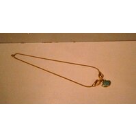 Kette, vergoldet, mit emailliertem Mittelstück in rosa und blau mit zwei Steinen. Modeschmuck. Gesamtlänge 42 cm. ... mehr