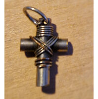 Halsreif, Metall, mit einem schweren zweiteiligen Anhänger - ein vergoldetes Metallteil in V-Form und ein Lapislazuli-Dreieck. Die Teile können auch ... mehr