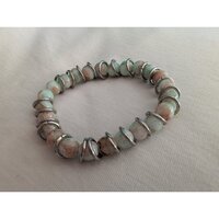 grün-rosé/beige marmorierte Perlen mit silbernen Saturnringen ... mehr