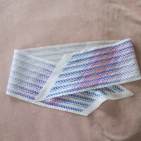 weiß mit hübschem Muster in blau/rosa/hellgrün - der Stoff ist in feine Falten gepresst ... mehr