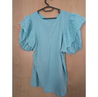 schönes hell- bzw. türkisblaues Shirt mit doppellagigen Puffärmeln mit Lochspitzenverzierung ... mehr