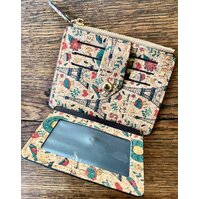 Vielseitige Geldbörse mit diversen Steckfächern und Zipper-Fach - buntes Design im Paris-Look - Material Kork oder Kork-Optik - inkl. schönem ... mehr