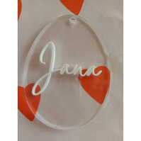 Schöne individuelle Oster-Dekoration: ein Ei AUS durchsichtigem Plexiglas mit weißer 3D-Aufschrift JANA ... mehr