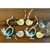 Vögel aus Holz, zum Anhängen an einen großen Ast, oder an Blumensträuße oder ans Fenster. Wie in der Landlust ... mehr