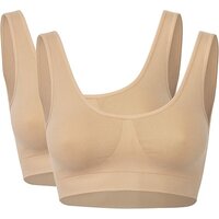 2 Sport BHs nahtlos Microfaser form Top Fitness Bustier Mieder Body ohne Bügel beige Unterwäsche