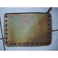 Eine nette Tasche in goldfarbe mit Nieten und Henkel. Sie wird mit einem Reissverschluss geschlossen.